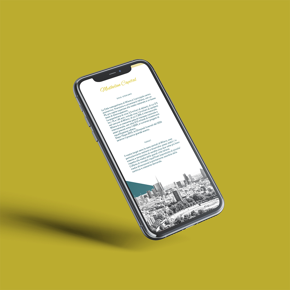 Medhelan, realtà del mercato immobiliare milanese, si rivolge sia al B2B che ai diretti acquirenti degli immobili. Ecco perché abbiamo sviluppato due materiali che comunicassero la stessa realtà a due target diversi: un depliant pieghevole di presentazione dell’azienda con tono formale e diretto al mondo del B2B e una presentazione, ottimizzata per il formato mobile, dedicata agli acquirenti. Il nostro obiettivo è stato quello di creare due prodotti diversi per tipologia e per target ma con un’immagine grafica coerente, solida e ben riconoscibile.
